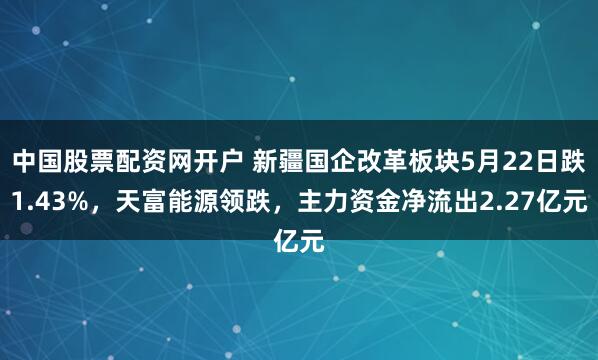 本站消息,5月22日新疆国企改革板块较上一交易日下跌1.43%中国股票配资网开户,天富能源领跌。当日上证指数报收于3380.19,下跌0.22%。深证成指报收于10219.62,下跌0.72%。新疆国企改革板块个股涨跌见下表: